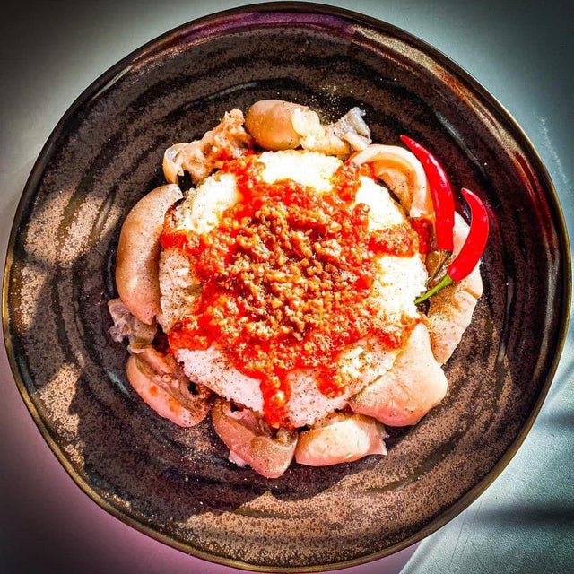 A traditional Egyptian delicacy, Kaware'ea Fattah features slow-cooked cow trotters (kaware'), simmered until meltingly tender in a rich bone broth.