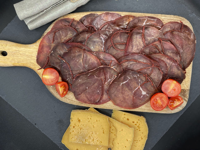 Discover the authentic taste of Egypt with this 500g pack of halal Pastarma! Made using a traditional recipe, this flavourful delicacy is a must-have for any meat lover. Halal Pastarma is made with a delicious blend of spices and juicy, tender cuts of beef, making it perfect for sandwiches, salads, and more. So whether you're hosting a party, or just need a quick snack, this product is sure to please.